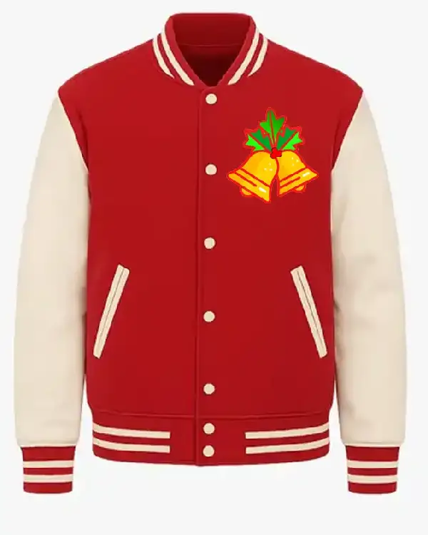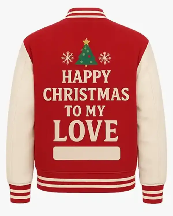 Shop Happy Christmas To My Love Red and White Varsity Jacket for Couples Sale