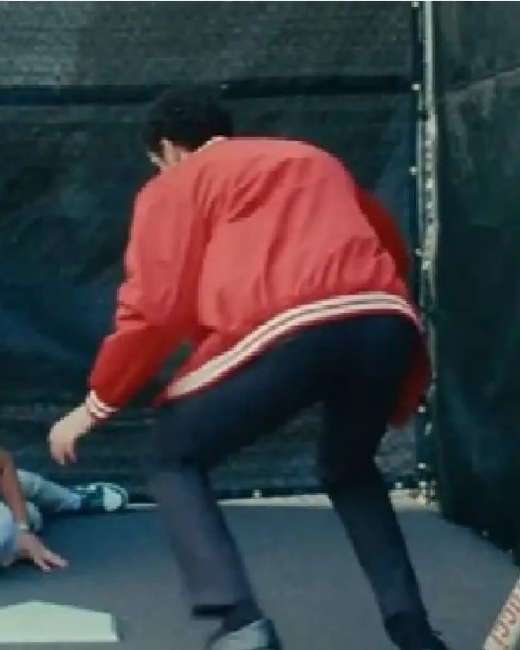 Happy Gilmore 2 Bad Bunny Ribbed Cuffs Red Letterman Bomber Jacket