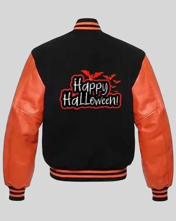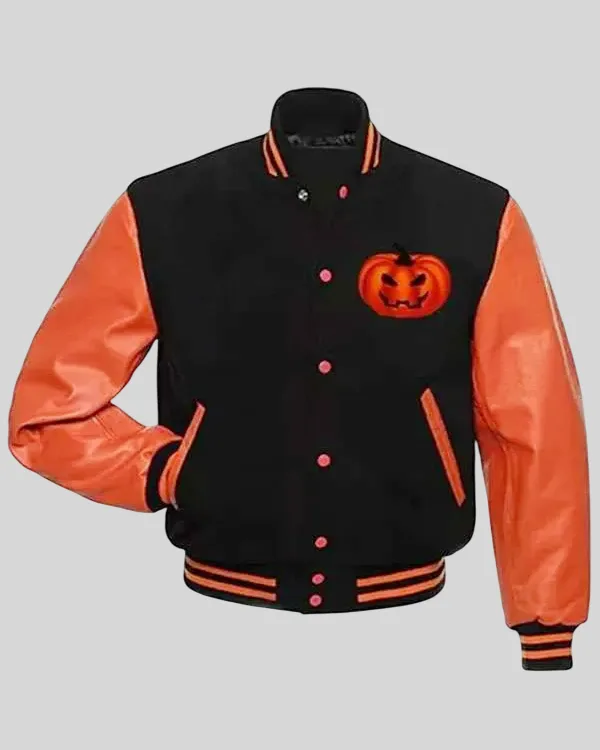 Order Happy Halloween Pumpkin Black and Orange Varsity Bomber Jacket Sale