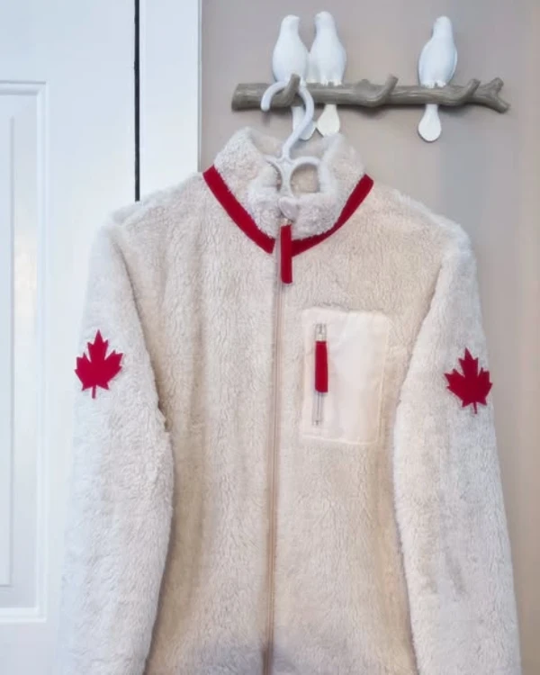 The Heated Rivalry Team Canada Jacket features a gender-neutral design, making it ideal for couples, fans, and fashion-forward wearers alike. Its clean white color, textured fleece finish, and subtle Team Canada branding give it a modern, athletic look that works just as well on the street as it does at the games.