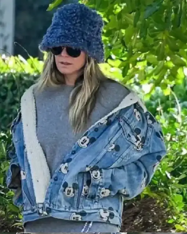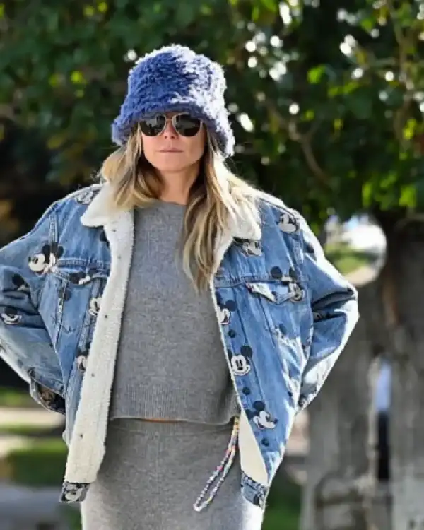 Heidi Klum Los Angeles Vintage Mickey Mouse Print Sherpa-Lined Medium Wash Denim Jacket
