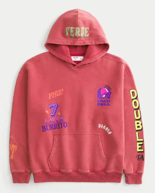 Shop Recreated – Hollister x Taco Bell Boxy Graphic Hoodie Red Sale