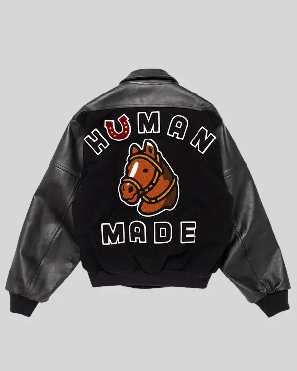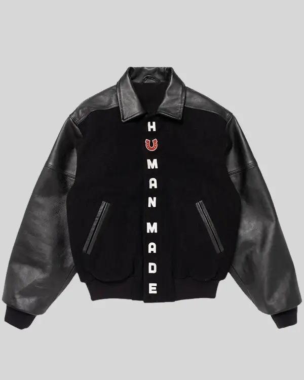 Re-Creation – 2025 Human Made Stadium Varsity Black Jacket – Wool & Leather