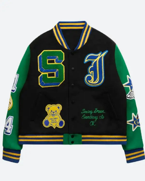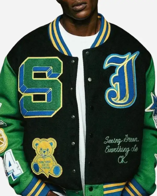 Shop Image Is Nothing Joe Fresh Goods Black & Green Letterman Varsity Jacket Sale