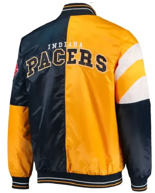 Buy Indiana Pacers Full-Snap Satin Black And Yellow Varsity Jacket Sale