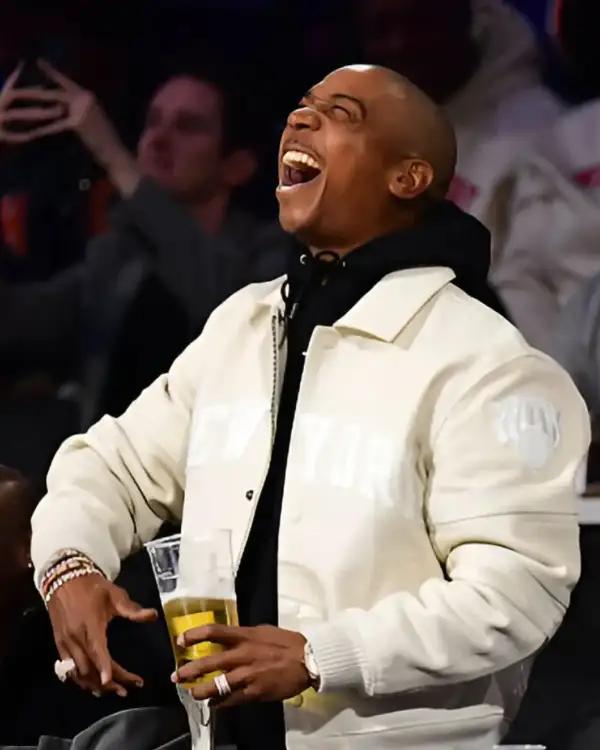 Buy Ja Rule Emirates NBA Cup Semifinals 2025 Cream Tonal Bomber Jacket