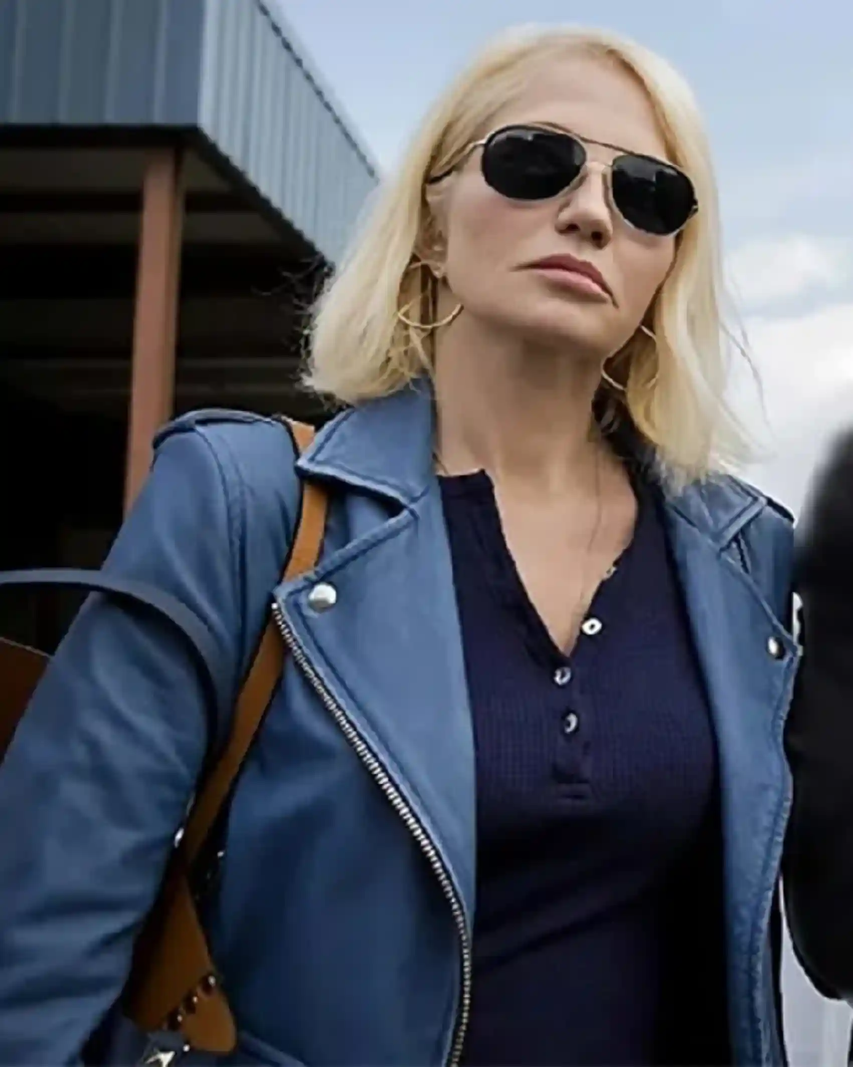 Buy Ellen Barkin Animal Kingdom Janine Cody Blue Biker Leather Jacket Sale