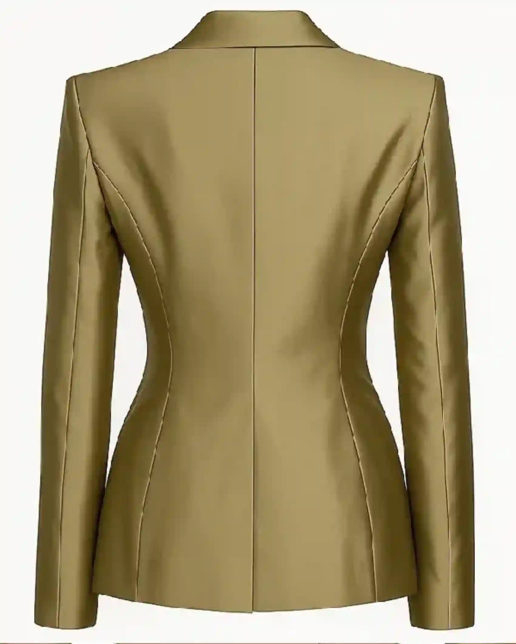 Shop Emmanuelle Chriqui Joy to the World Movie 2025 Joy Golden Satin Blazer Sale