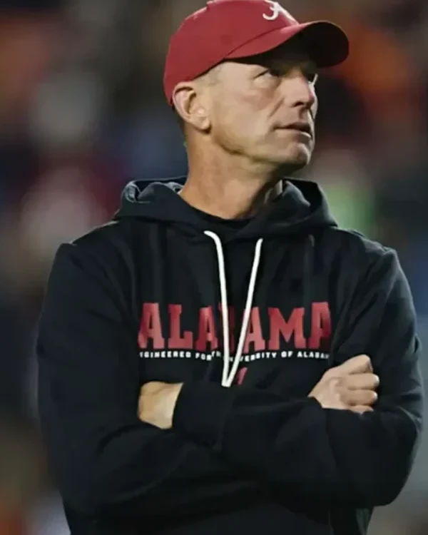 Buy Kalen Deboer Alabama Sideline Crimson Alabama Text & Script A Logo Black Pullover Hoodie