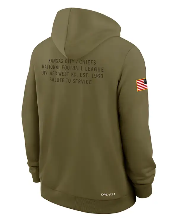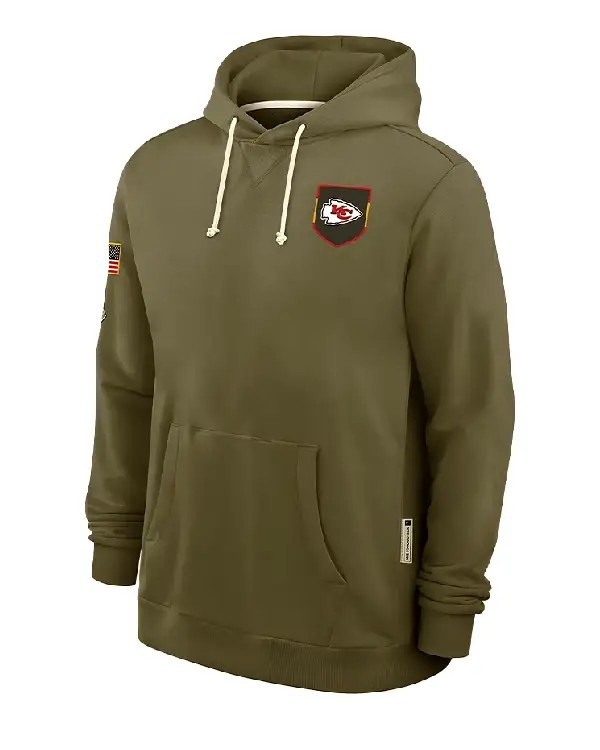 Buy Kansas City Chiefs Salute to Service 2025 Travis Kelce Green Pullover Hoodie