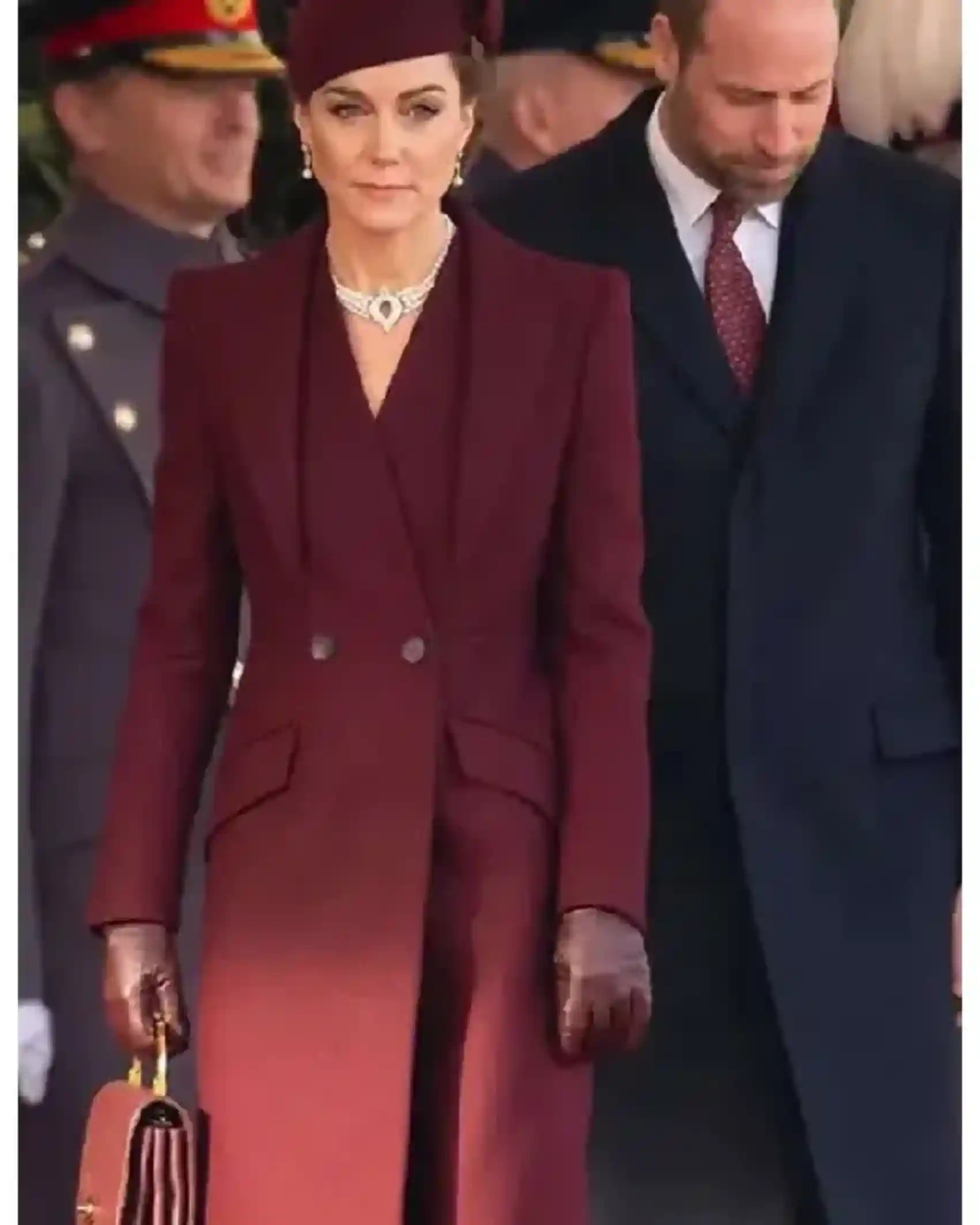 Order Ceremonial Welcome Princess Of Wales Kate Middleton Burgundy Long Wool Coat Sale