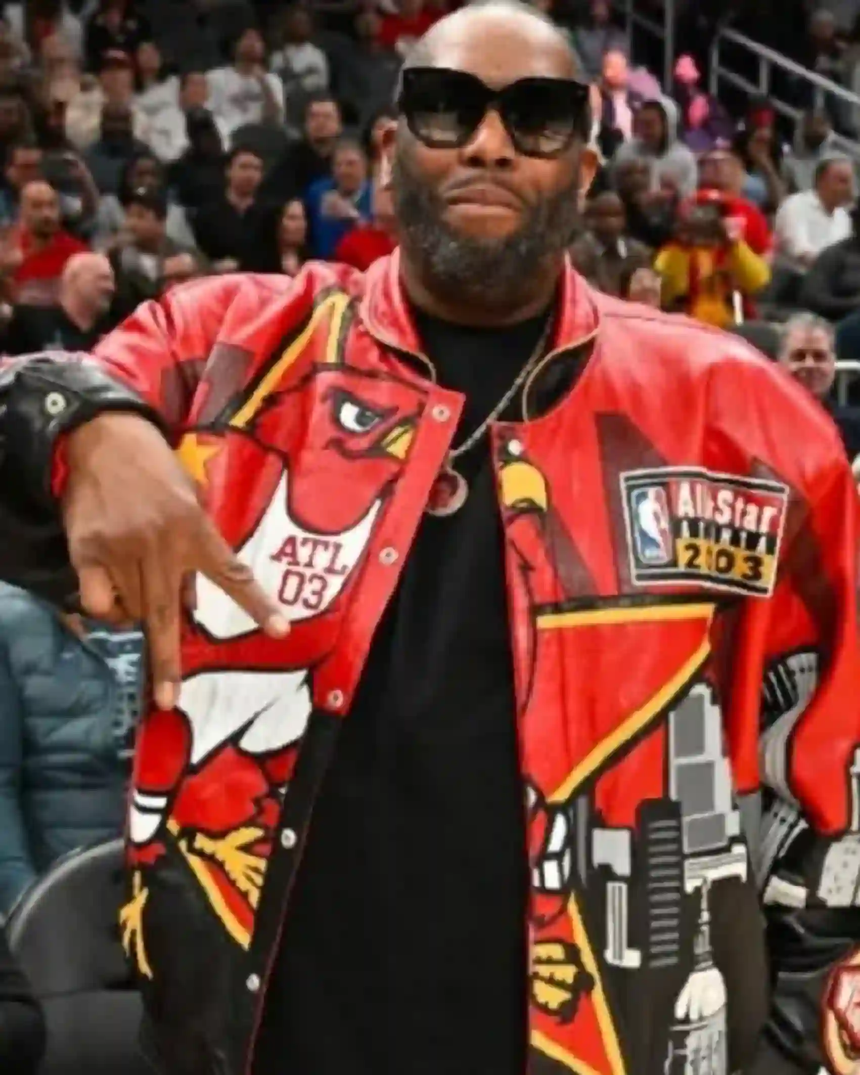 Buy American Rapper and Singer Killer Mike Atlanta Hawks All-Star 2003 Red Leather Jacket Sale