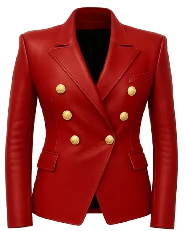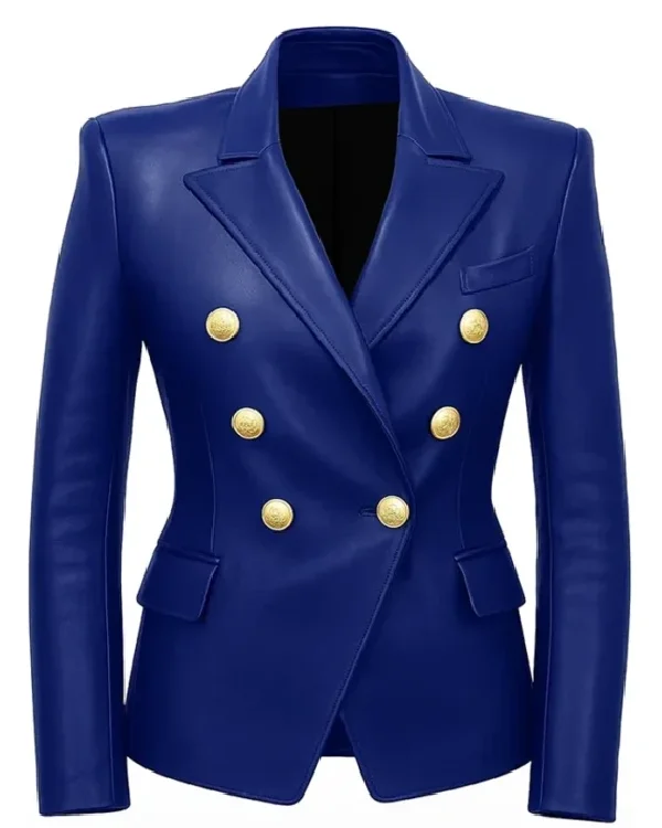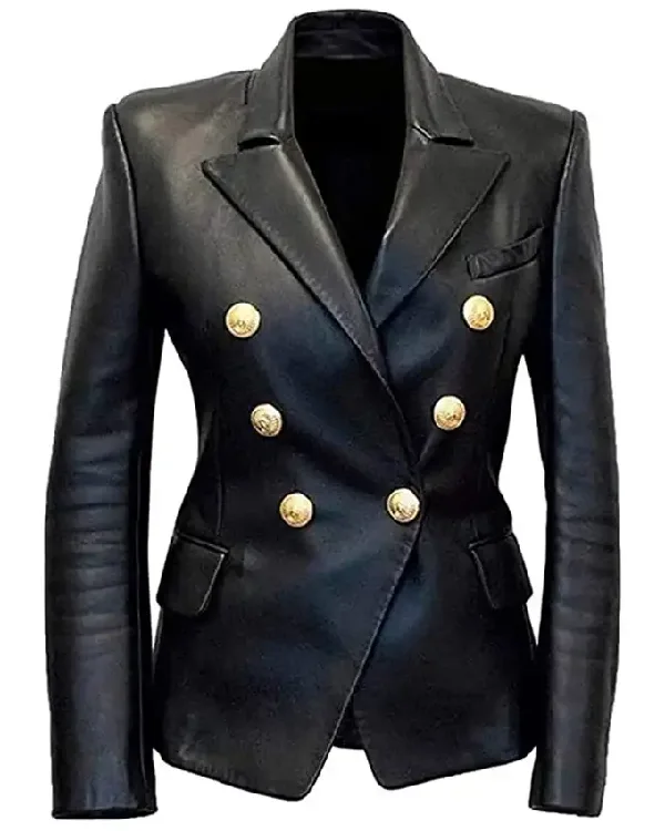 Kim Kardashian Double Breasted Leather Blazer For Sale