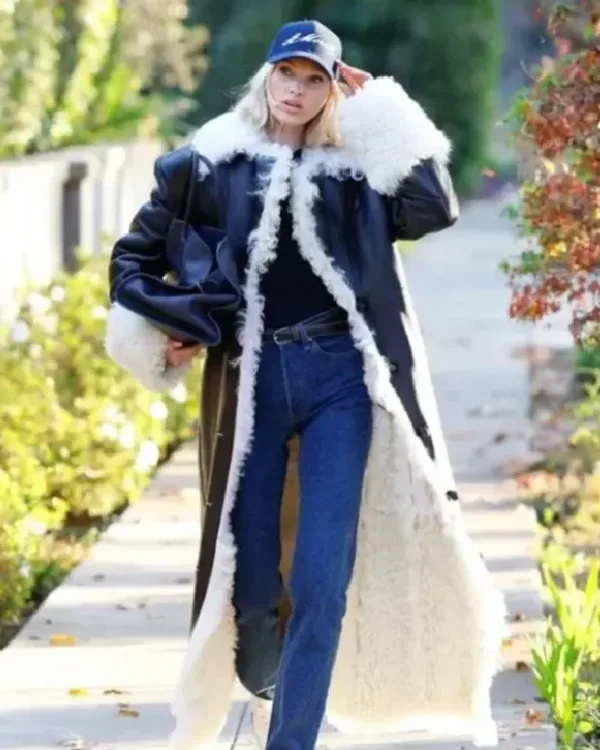 LA 2025 Elsa Hosk Black Shearling Leather Coat