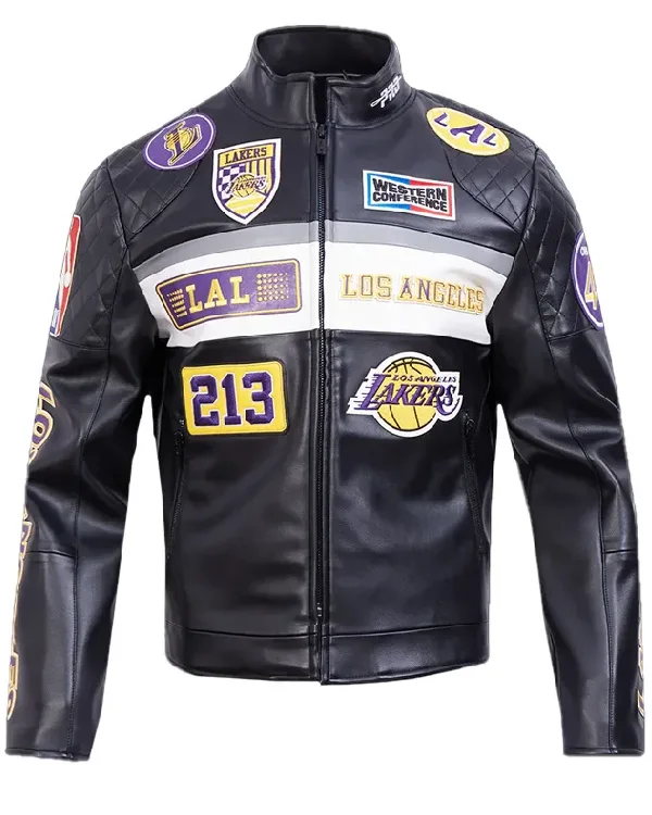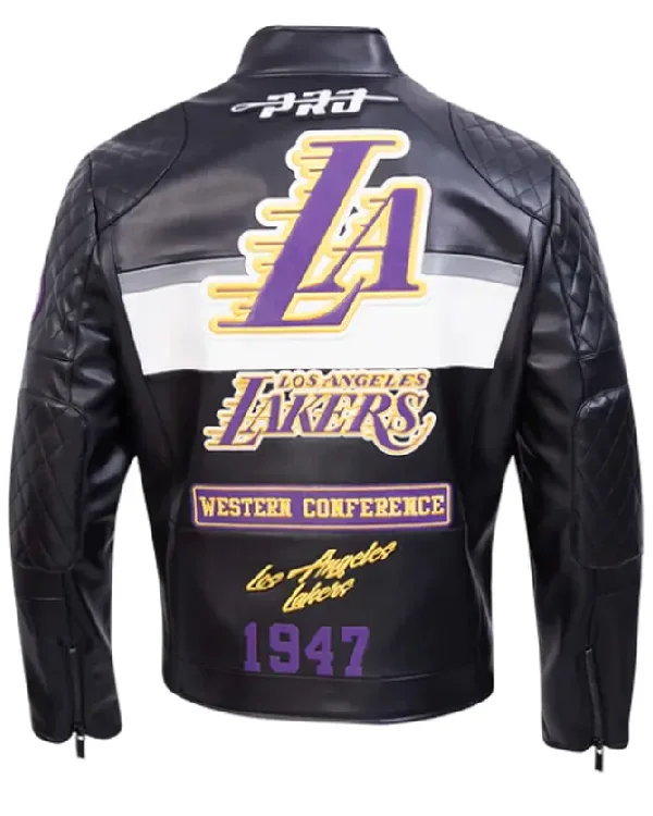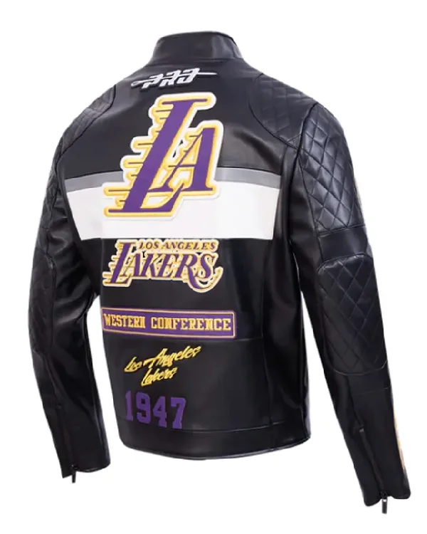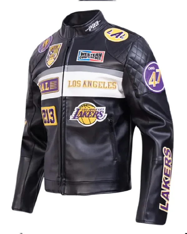 Buy Los Angeles Lakers Moto Black Full-Zip Leather Jacket Sale