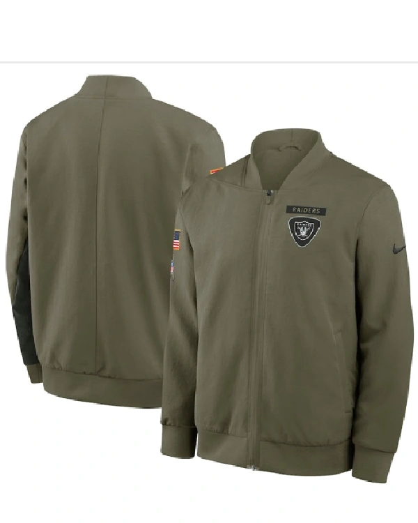 Shop Las Vegas Raiders Nike Olive Green 2025 Salute To Service Sideline Full-Zip Bomber Jacket Sale