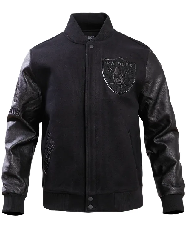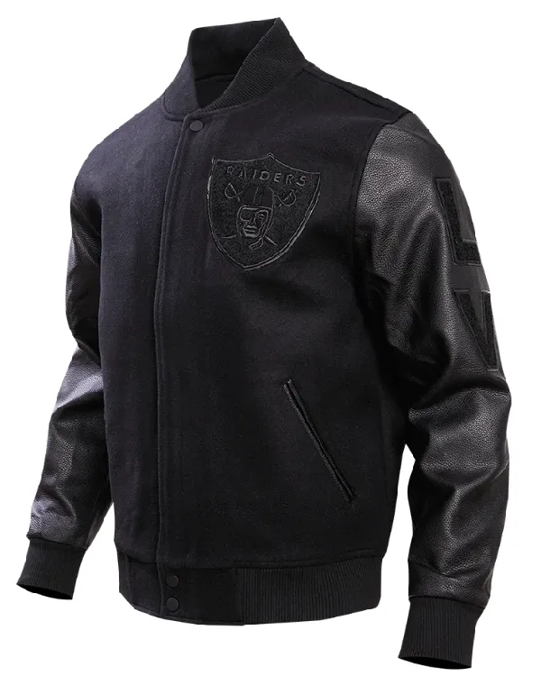 Las Vegas Raiders Triple Black Wool Varsity Jacket