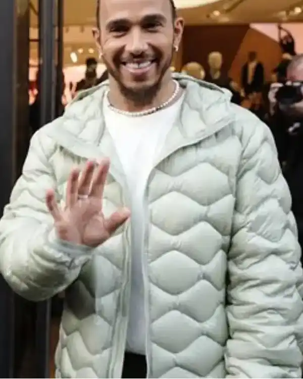 Buy British car racer Lewis Hamilton 2025 Green Quilted Puffer Jacket