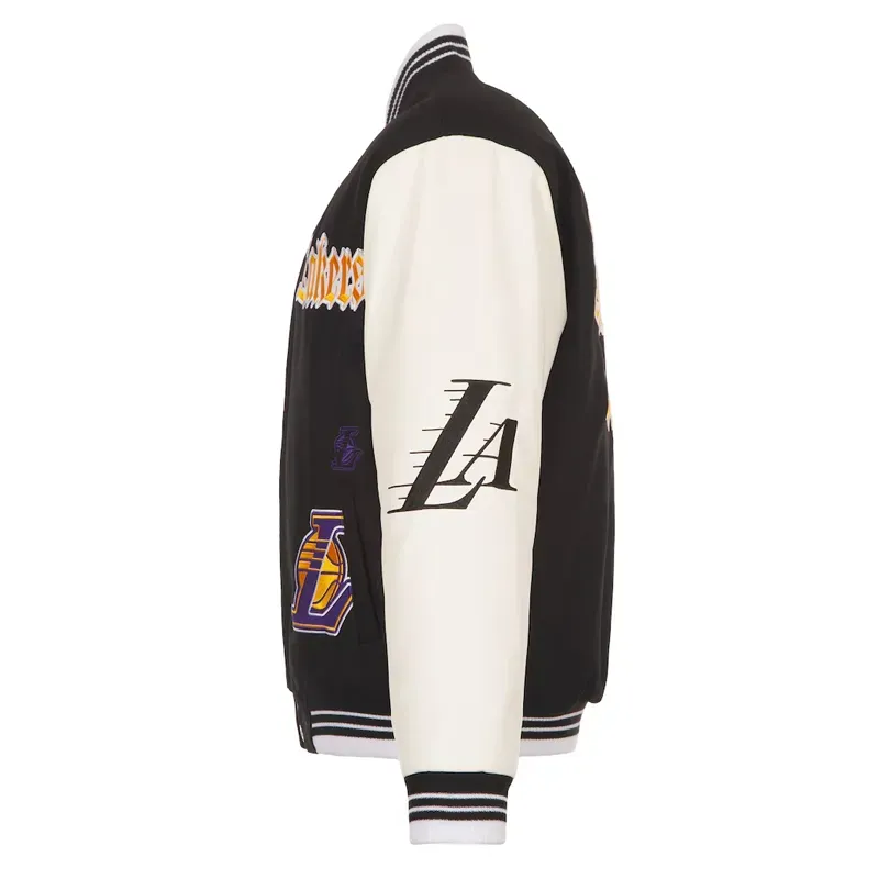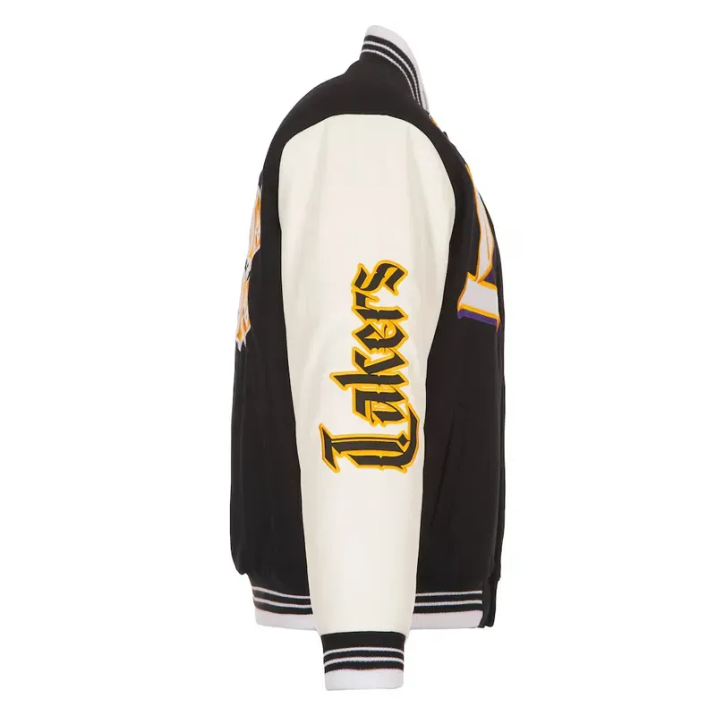 Los Angeles Lakers Gothic Varsity Wool/Leather Black and White Jacket
