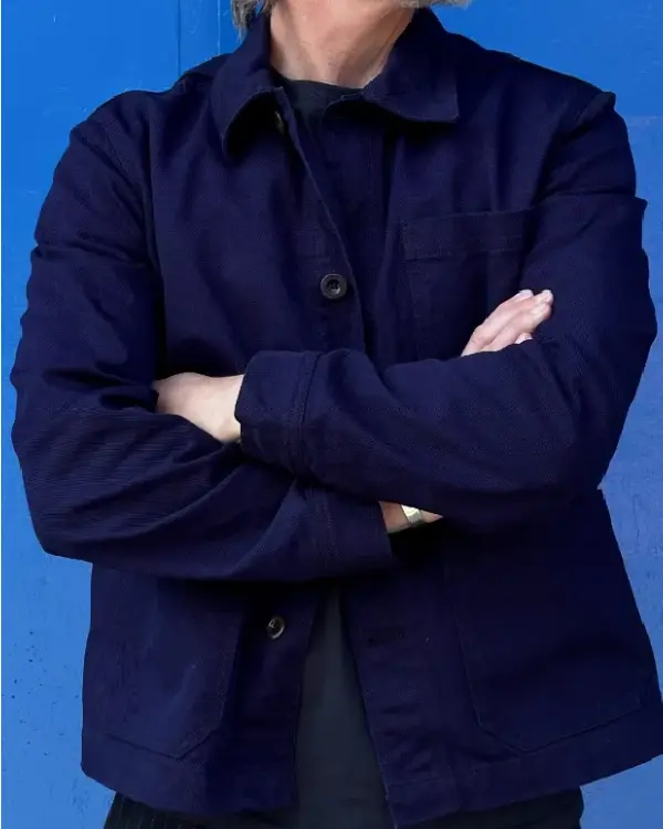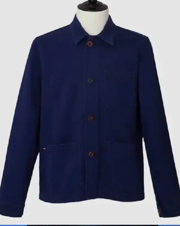 Buy L’Usine Bleue Coltin Button Front Classic Collar Triple Patch Pockets Utility Navy Blue Work Jacket On Sale