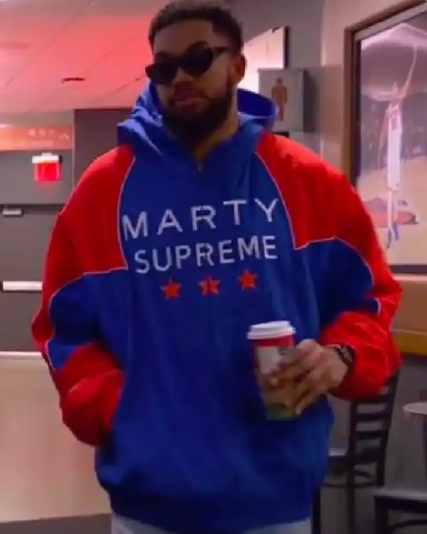 Buy Karl-Anthony Towns Timothee Chalamet Marty Supreme Orange & Blue Jacket Hoodie Sale
