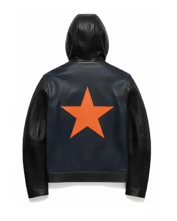 Buy Marty Supreme Navy Hooded Faux Leather Jacket