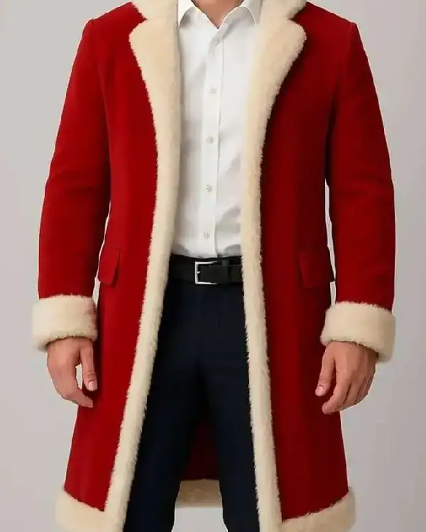 Shop Wrap Yourself in Festive Luxury with the Men’s Red Christmas Fur-Trim Coat Sale