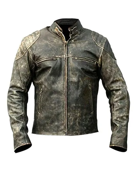Mens Antique Retro Biker Distressed Leather Jacket