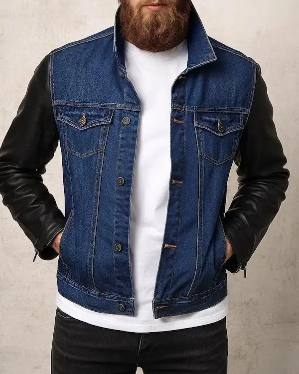 - Exterior: Body made from denim and sleeves made from genuine leather