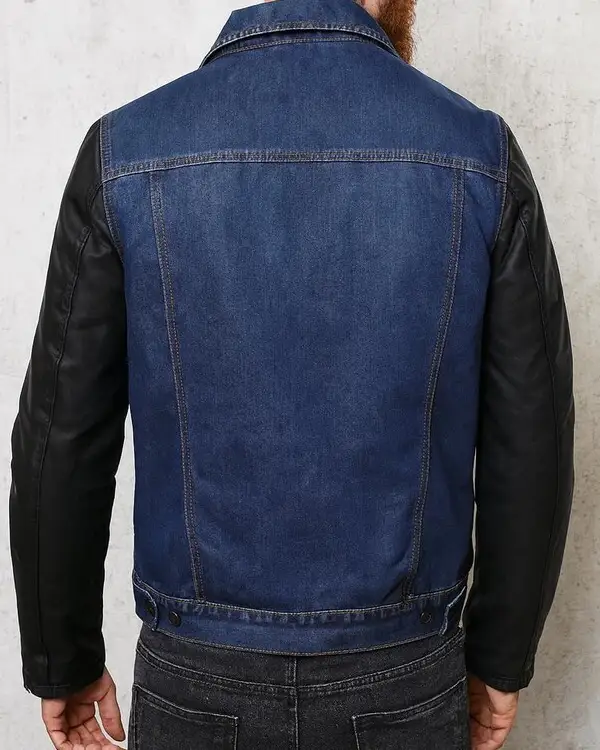 Shop Men’s Jean / Denim Jacket with Black Leather Sleeves Sale