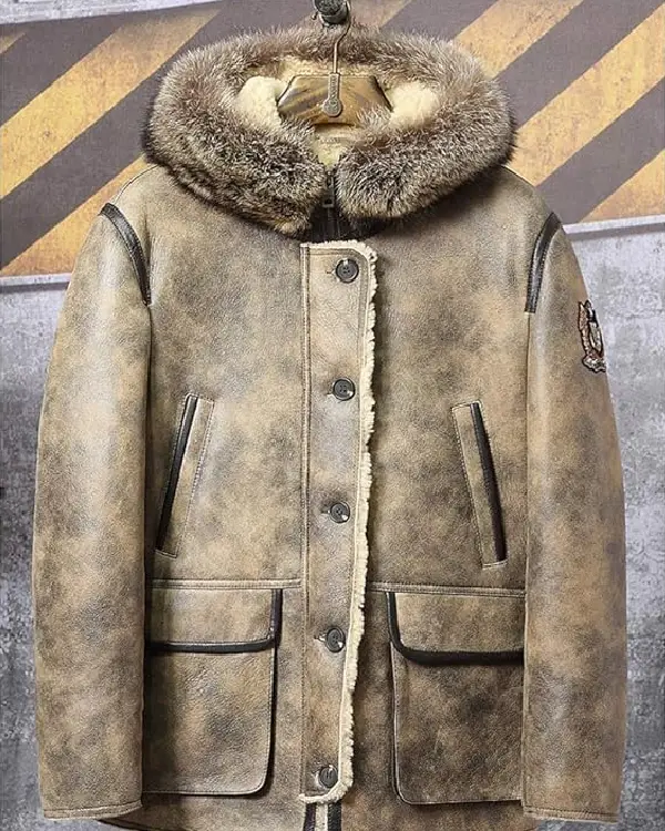 Order Men’s Shearling Parka Leather Tan Beige Jackets Sale