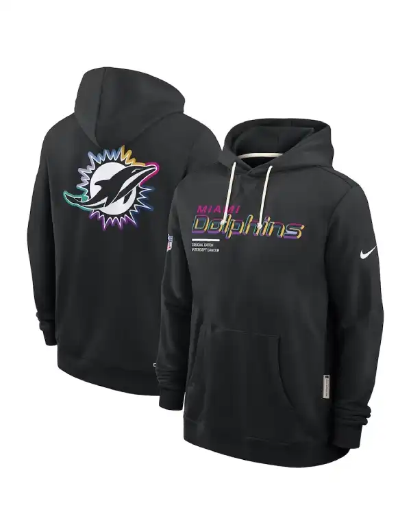 Buy Miami Dolphins Nike Black 2025 NFL Crucial Catch Sideline Standard Issue Dri-FIT Hoodie Sale