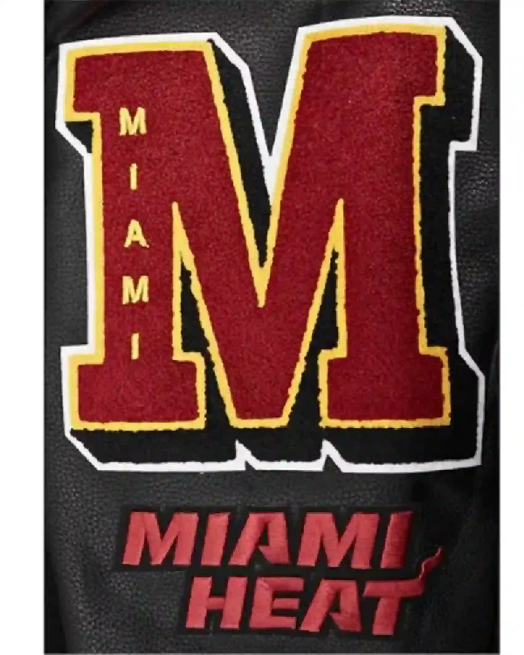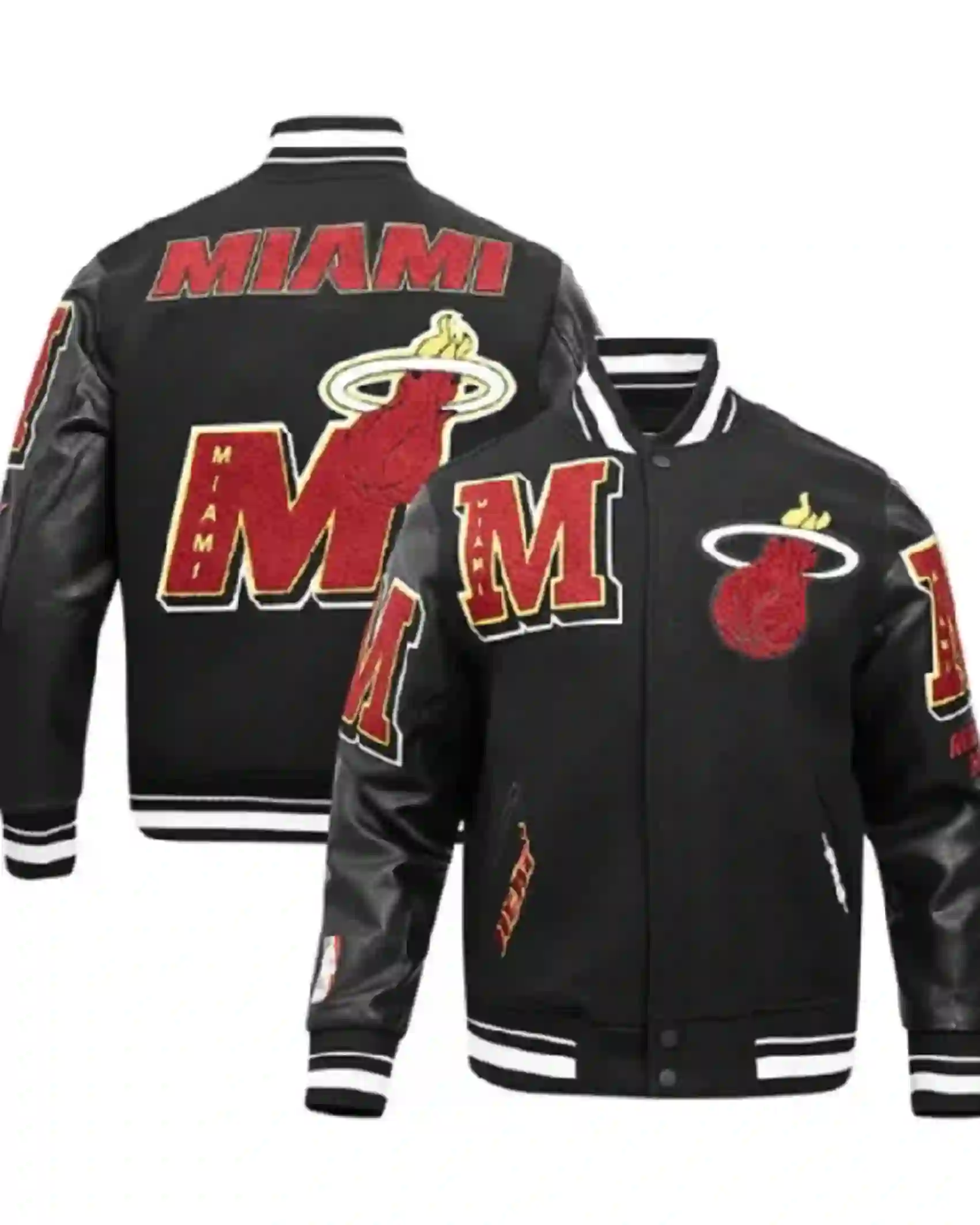 Buy Full-zip Miami Heat Mash-Up Black Wool and Leather Varsity Jacket Sale