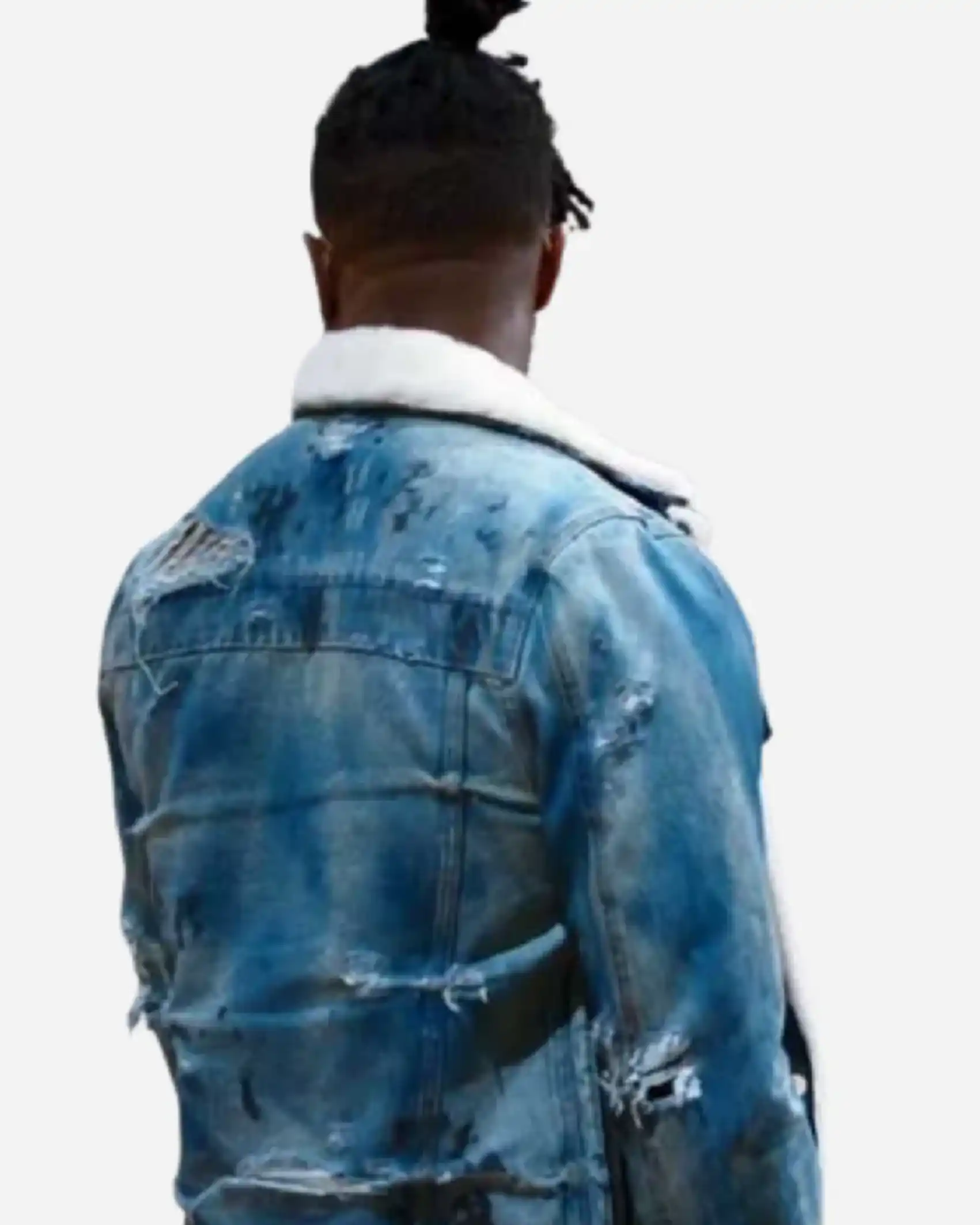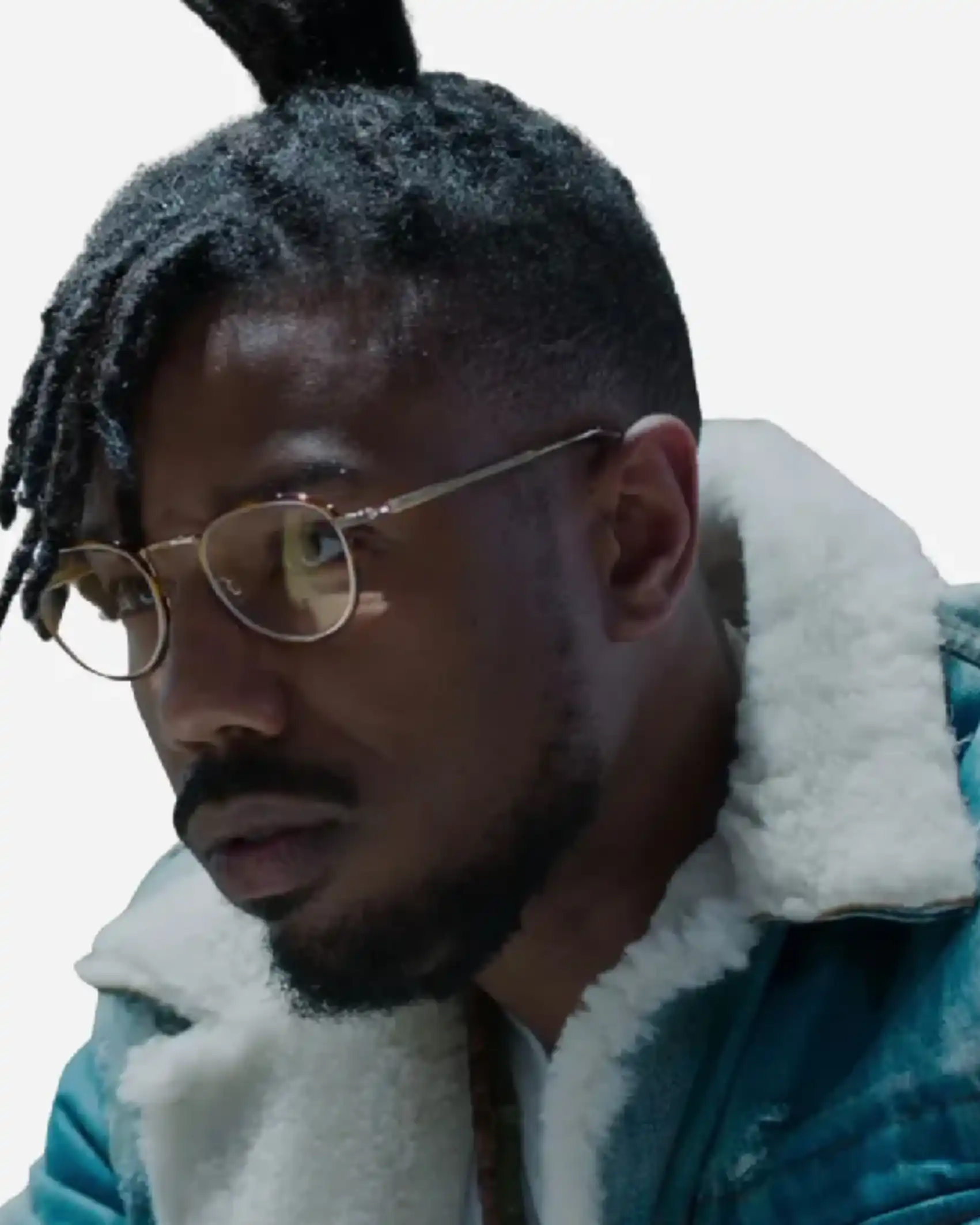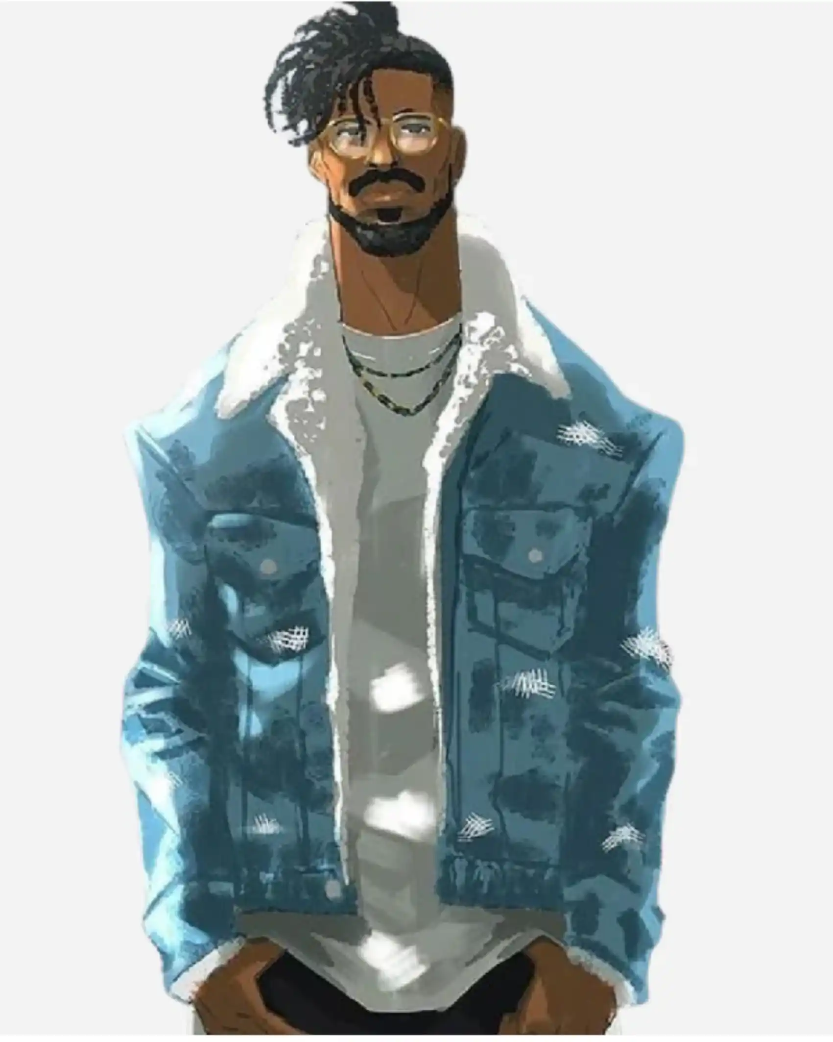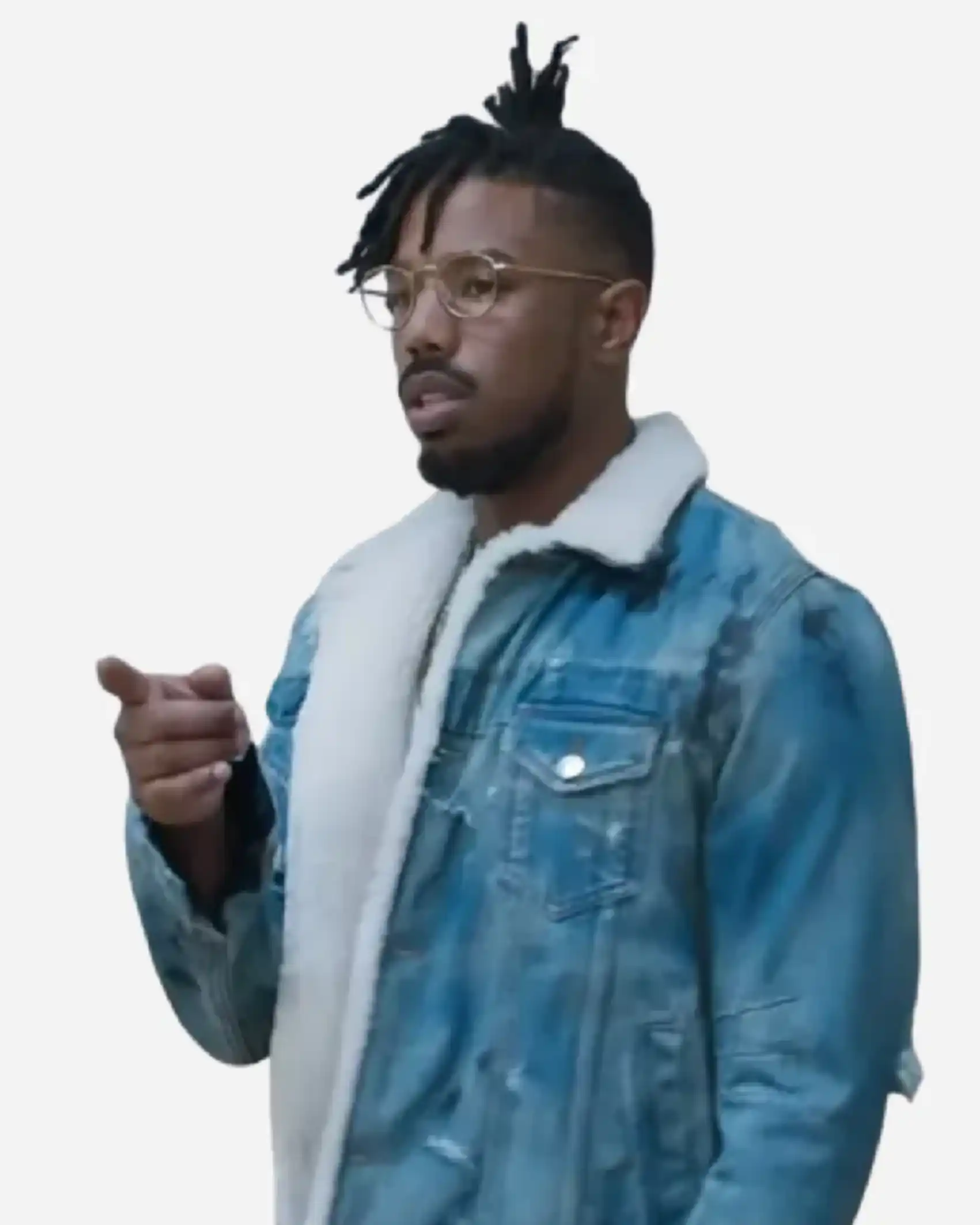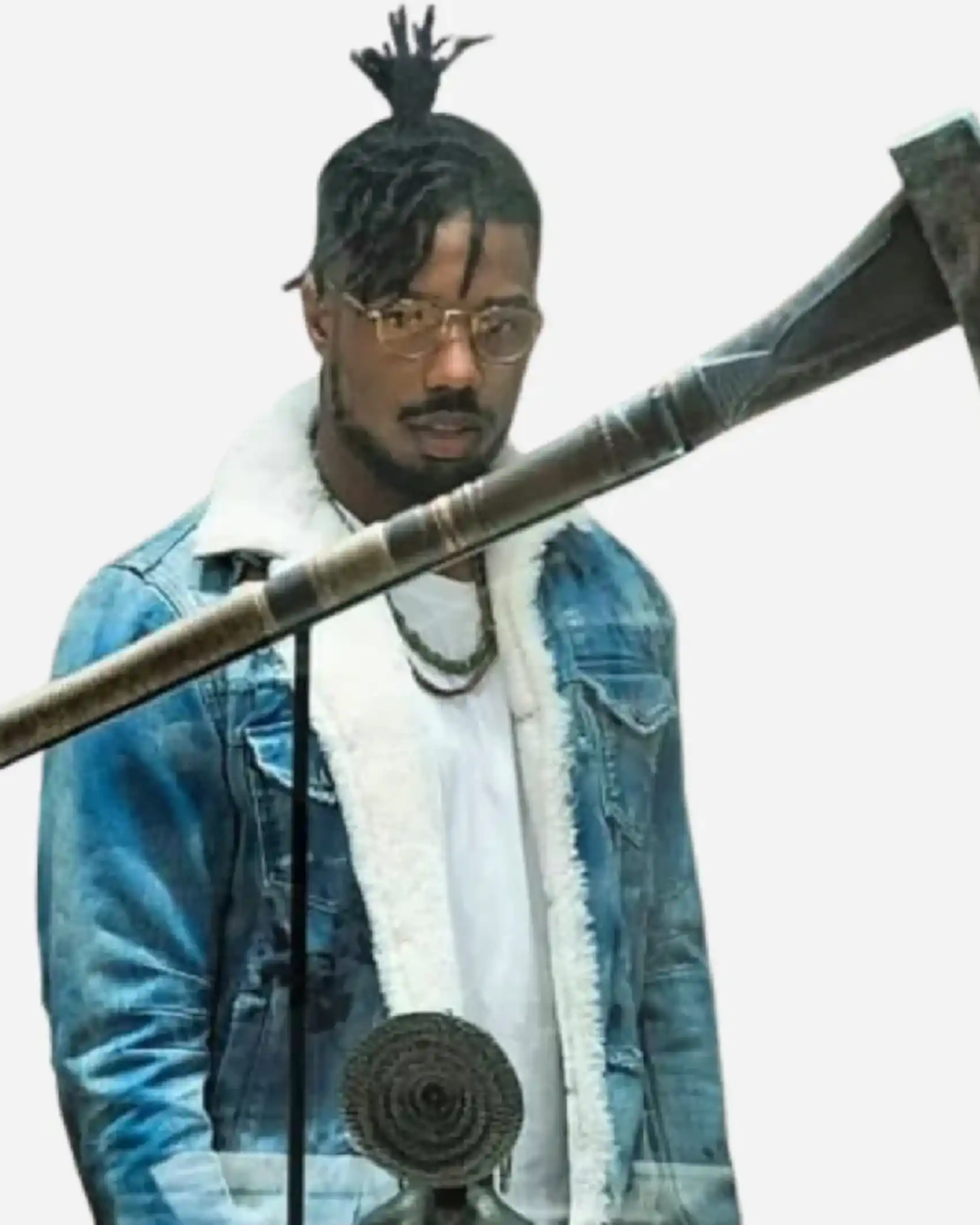 Buy Michael B. Jordan Black Panther Erik Killmonger Blue Shearling Denim Jacket Sale