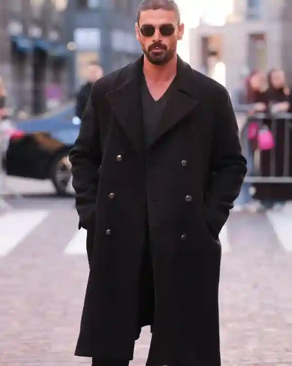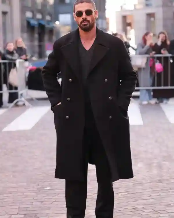 Buy Michele Morrone Vanity Fair Stories 2025 Double-Breasted, Notched Lapels Black Long Wool Coat