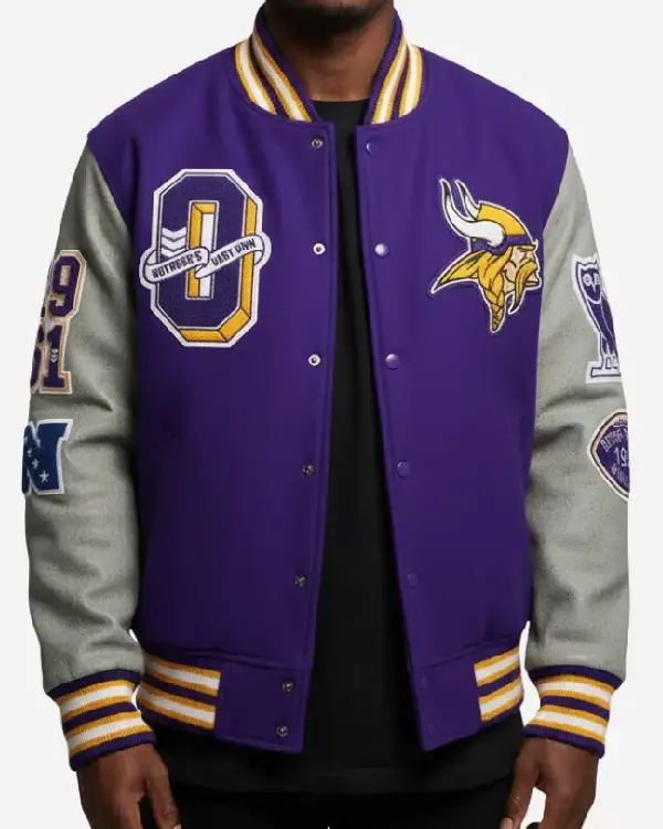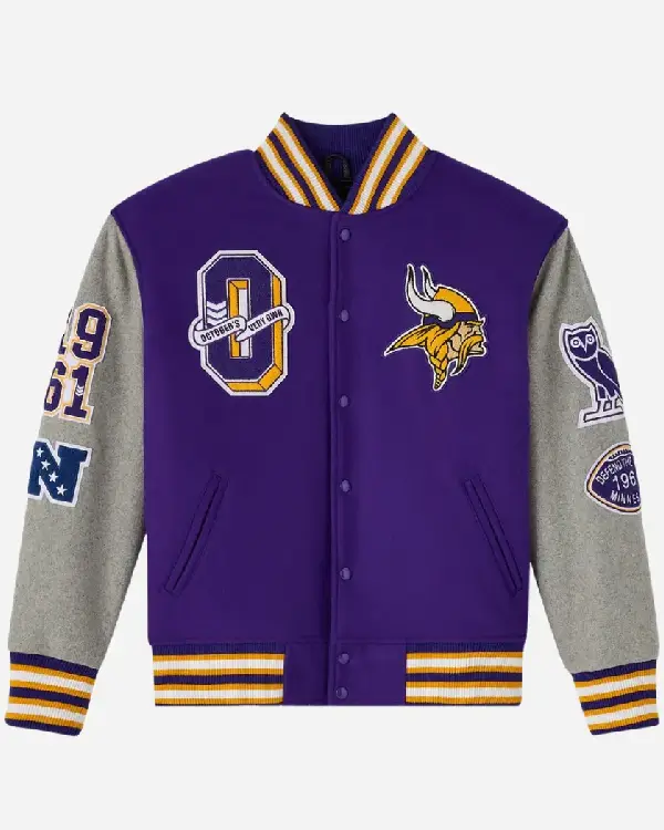 Buy October’s Very Own OVO x NFL Minnesota Vikings Purple Varsity Jacket 2025