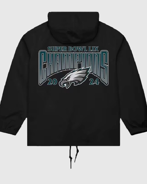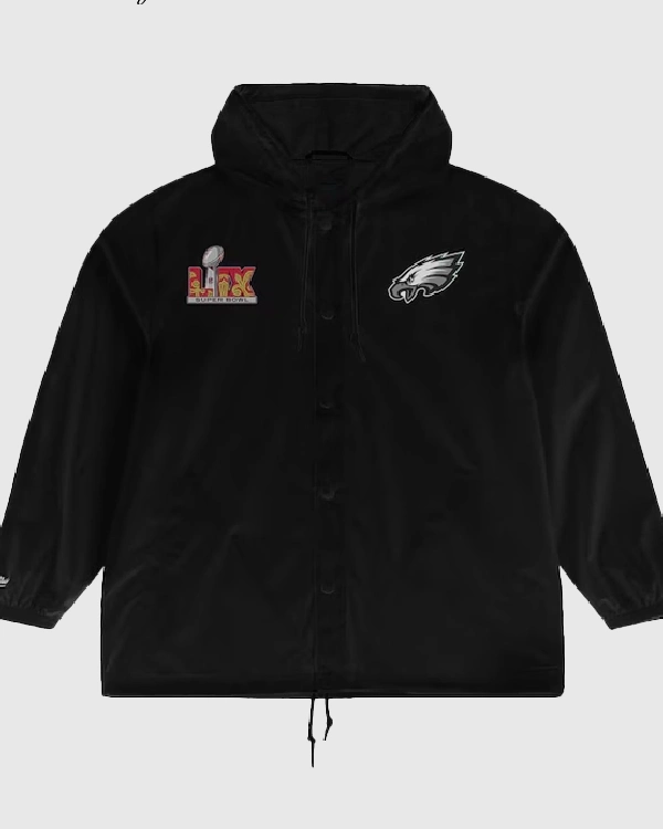 Philadelphia Eagles Mitchell & Ness Super Bowl LIX Champions Full-Snap Hoodie Windbreaker Jacket – Black