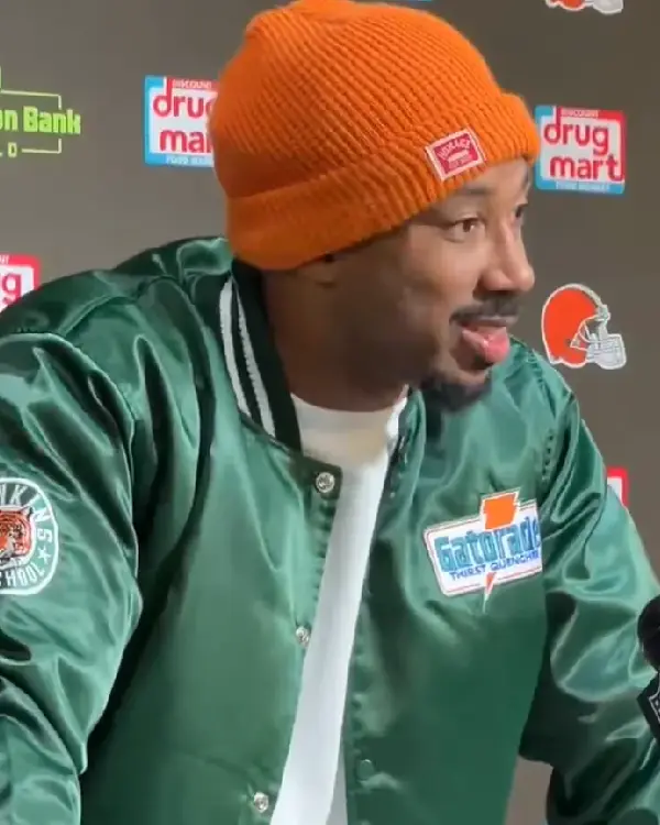 Shop Cleveland Browns Myles Garrett Green Gatorade Varsity Jacket Sale