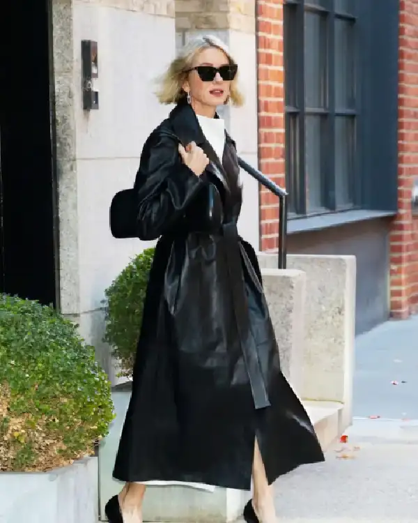 Naomi Watts NYC 2025 Black Long Leather Coat