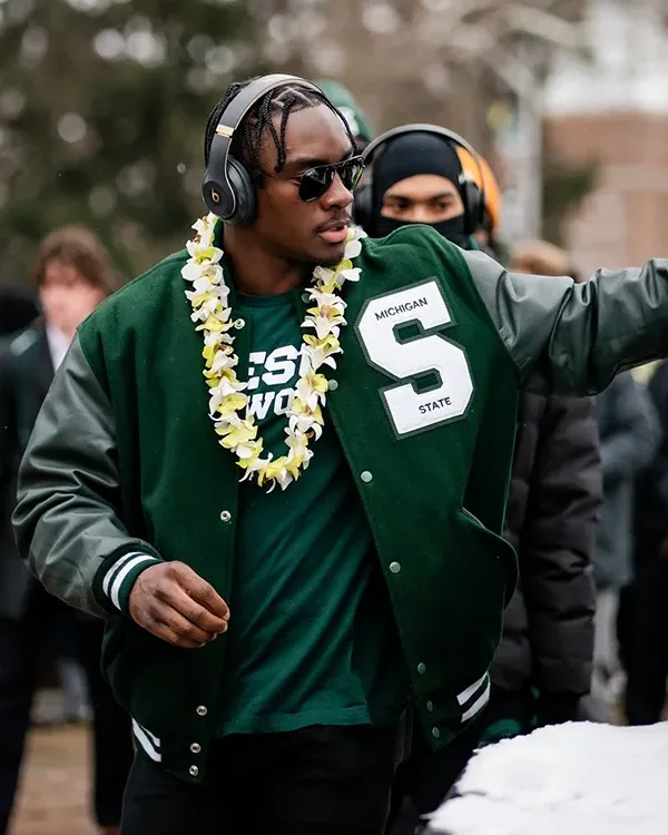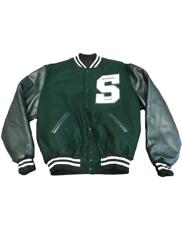 Shop Spartan Walk Nathan Carter Michigan State University Wool and Leather Varsity Jacket Sale