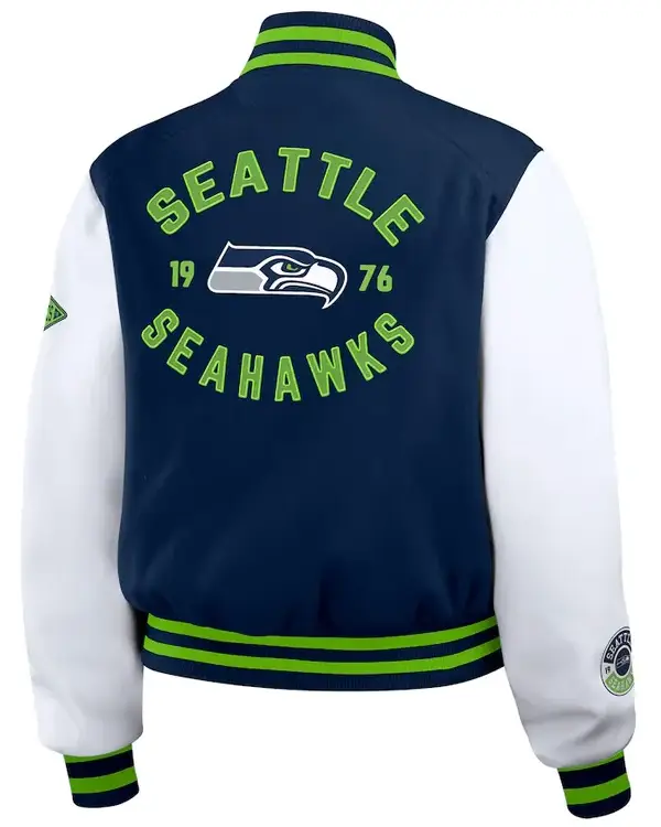 Seattle Seahawks Varsity Full-Zip Wool/Leather Navy and White Jacket