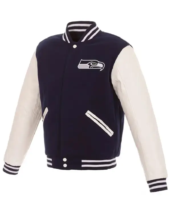 Home / Products / NFL / Seattle Seahawks Jackets / Navy/White Seattle Seahawks Varsity Jacket