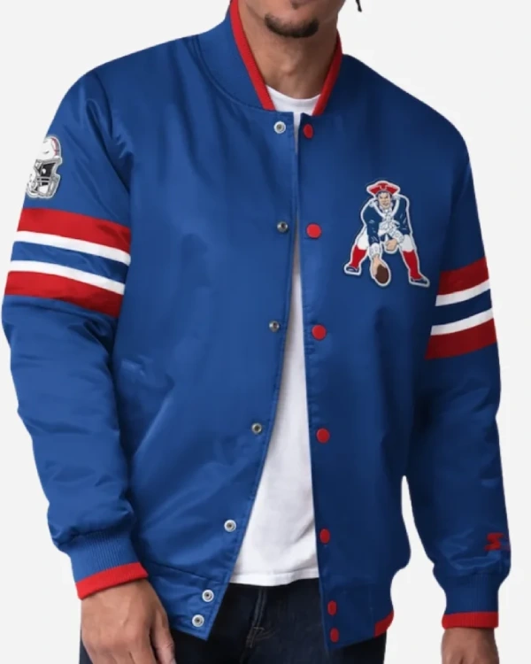 Buy New England Patriots Blue Varsity Satin Jacket For Sale