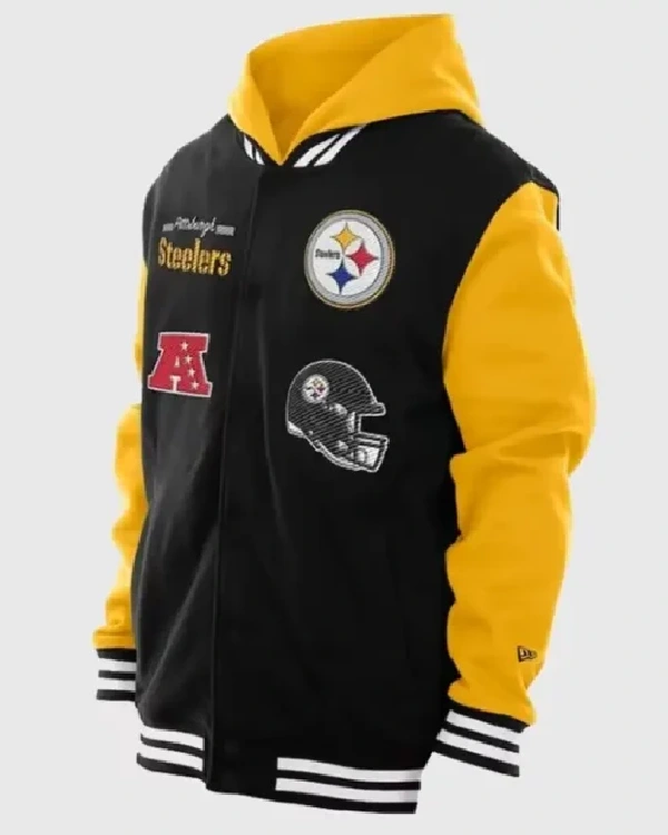 Shop Pittsburgh Steelers New Era Black and Yellow Varsity Hooded Jacket