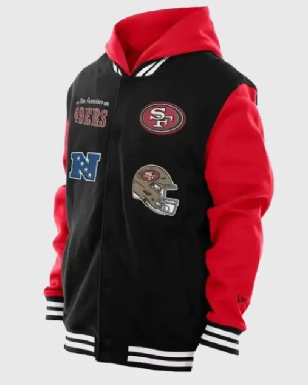 Buy San Francisco 49ers New Era Black and Red Varsity Hooded Jacket