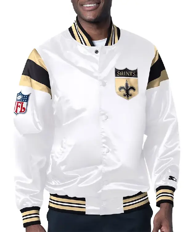 New Orleans Saints Midweight White Satin Jacket