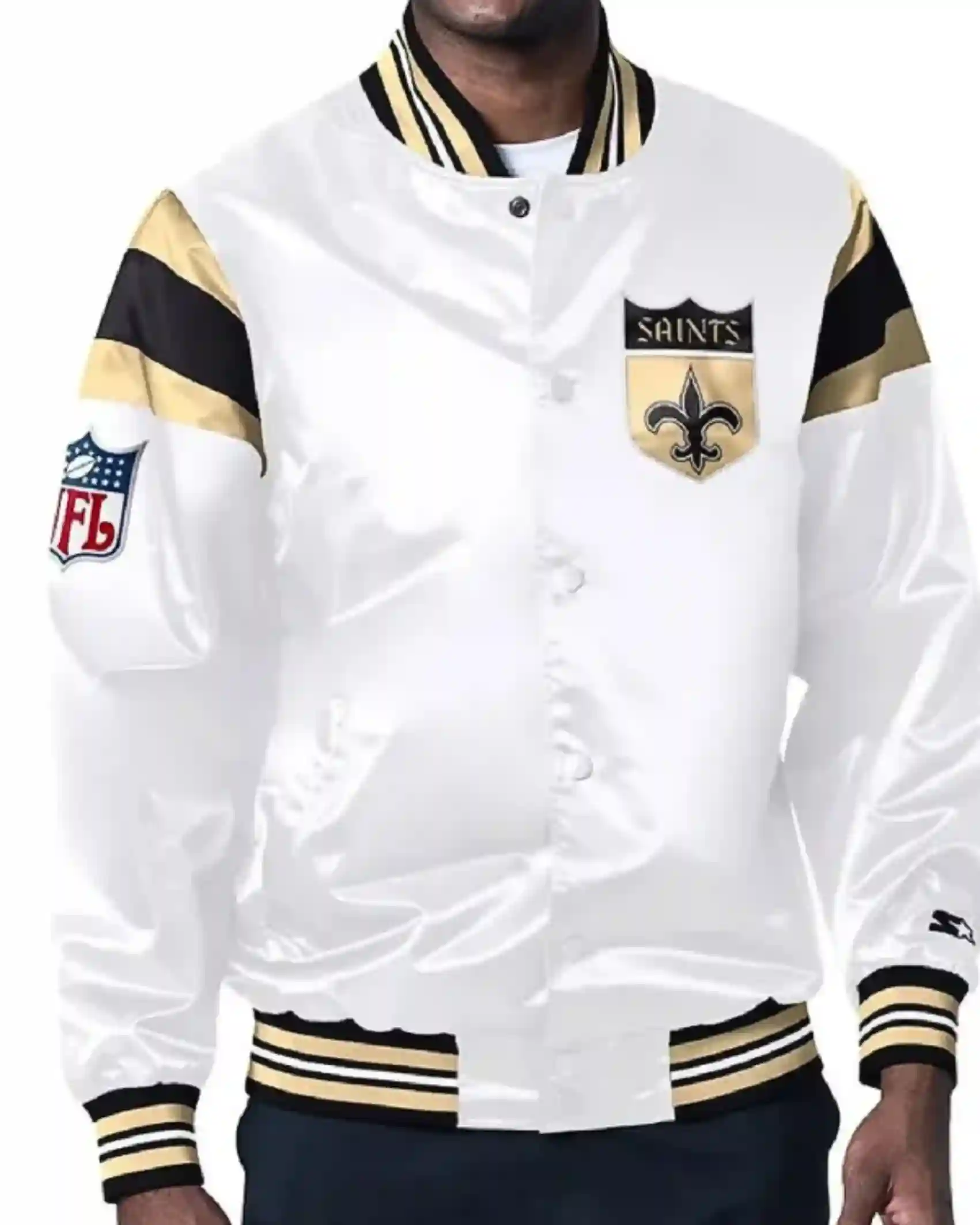 Home / Products / NFL / New Orleans Saints Jackets / New Orleans Saints Satin Varsity Jacket