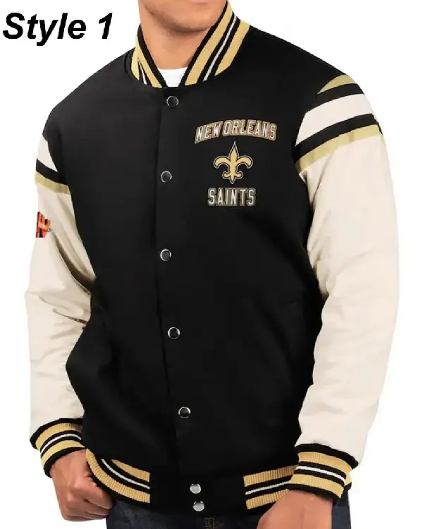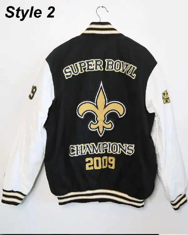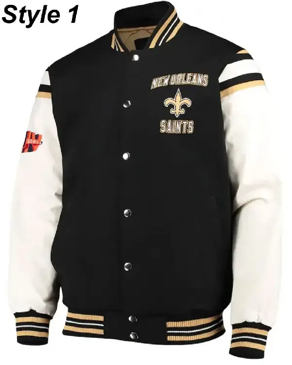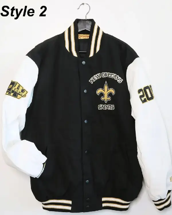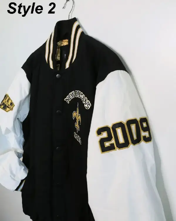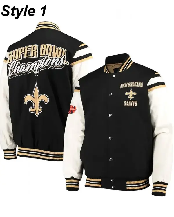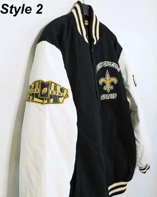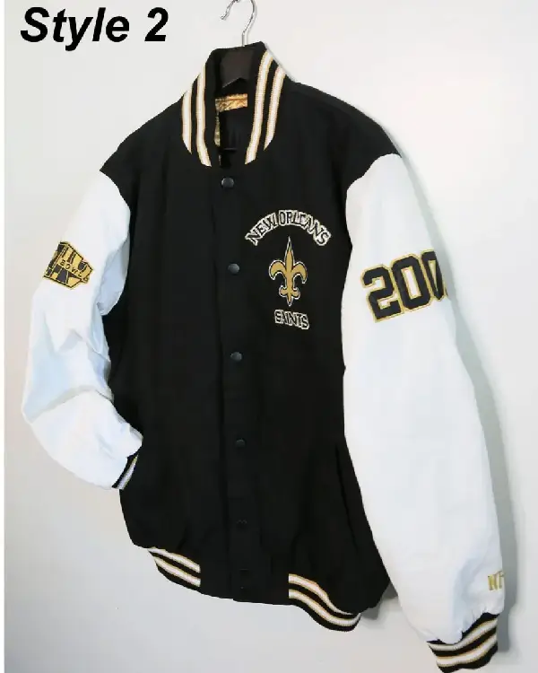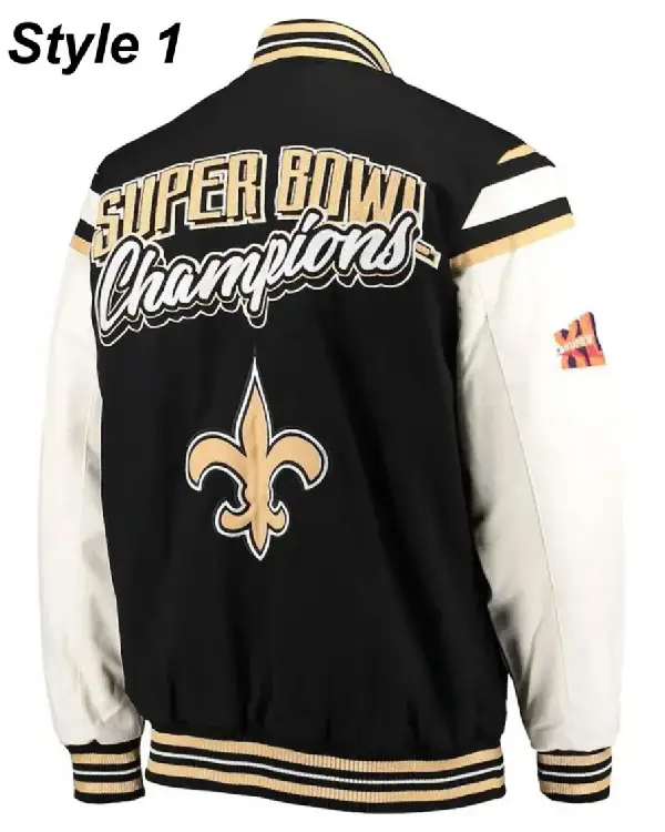 Home / Products / NFL / New Orleans Saints Jackets / New Orleans Saints Victory Formation Commemorative Varsity Black and White Jacket