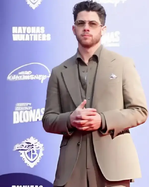 Shop Nick Jonas Hand and Footprint Ceremony 2025 Single-Breasted, Greenish-Brown Blazer Sale