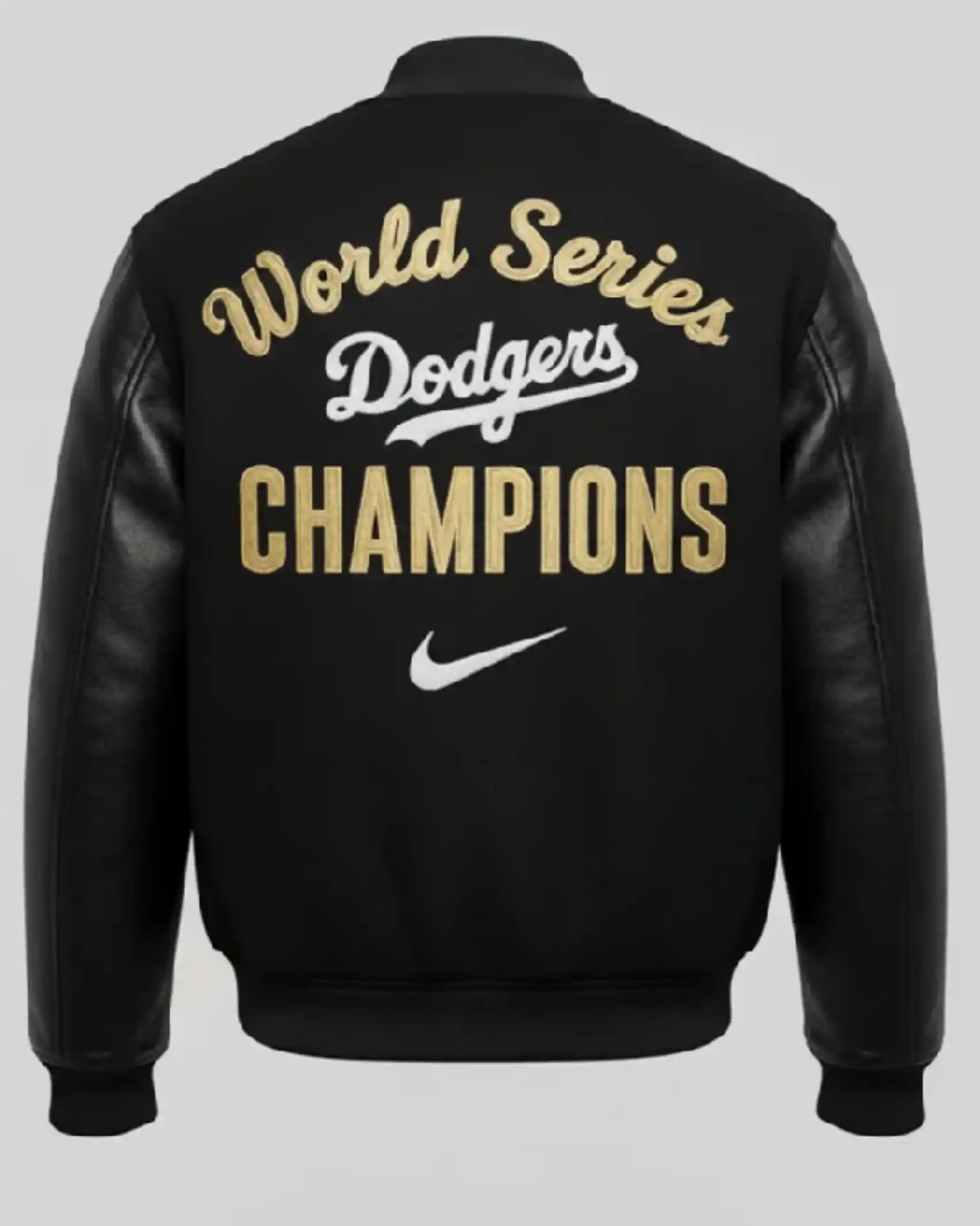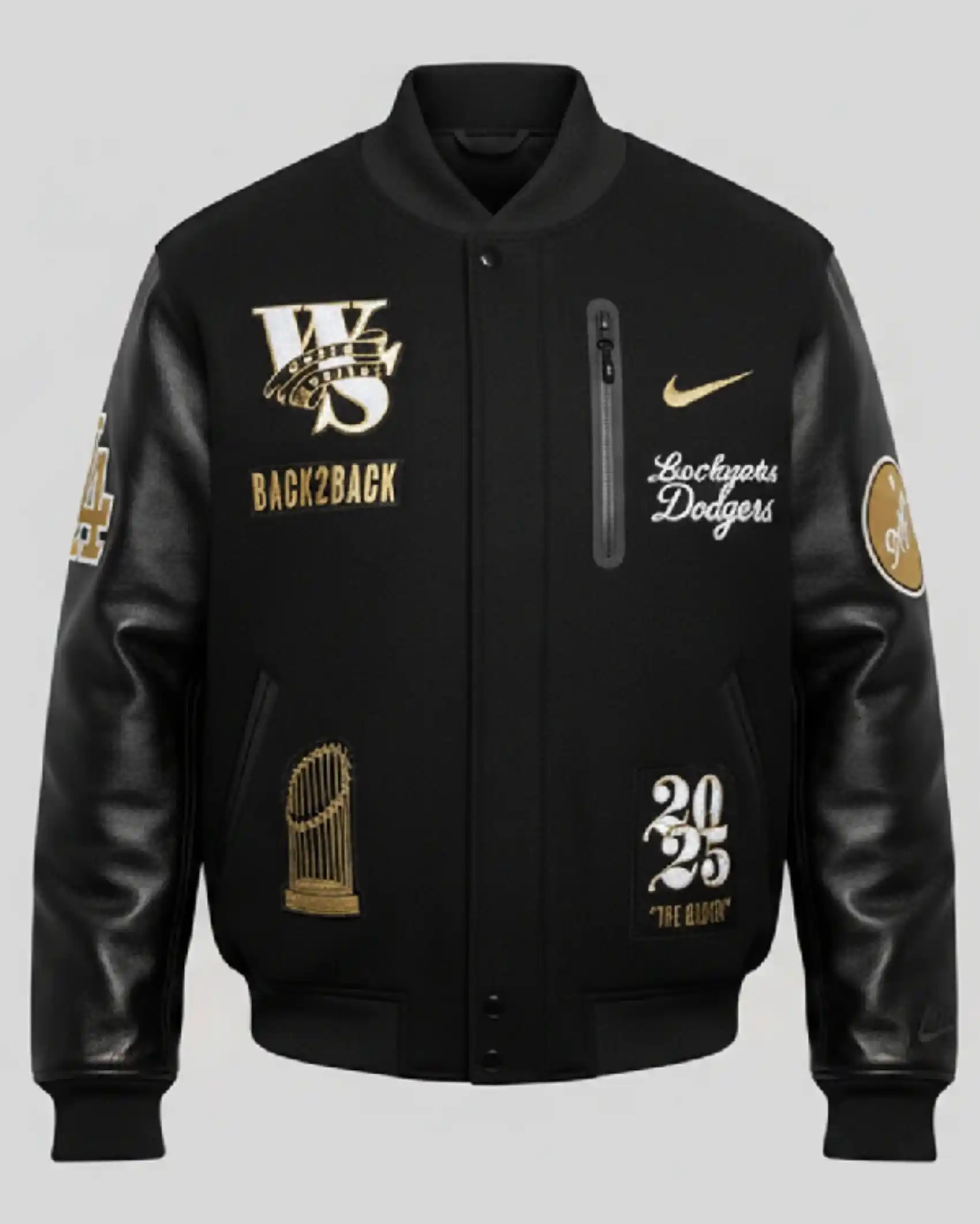 Step up your fan style with the Nike LA Dodgers World Series Black Letterman Jacket, a premium varsity-inspired jacket engineered for champions. This isn’t your average merch—it’s a bold statement piece that celebrates L.A. baseball royalty while offering the comfort, durability, and street-ready style that Nike is known for. Crafted with a substantial wool-blend body and contrast sleeves, the jacket delivers an authentic letterman feel with a modern athletic edge. Snap closures, ribbed cuffs, and a ribbed hem ensure a snug fit, while providing the perfect layering option for hoodies or sweatshirts during cooler weather. Official World Series patches adorn the chest and sleeves, proudly showcasing your team’s championship status without saying a word. The blackout black-on-black-on-blue colorway offers a sleek, versatile look that effortlessly transitions from the stadium to the streets. Every detail, from the rich embroidery to the durable construction, is carefully designed to stand out while maintaining long-lasting quality. Whether you’re a die-hard Dodgers fan or a streetwear enthusiast, this jacket combines heritage style and contemporary performance. It’s warm, weighty, and built to be the centerpiece of your winter wardrobe. Limited edition and highly coveted, the Nike Dodgers World Series Letterman Jacket is more than apparel—it’s a collectible statement of team pride and premium craftsmanship. Don’t miss your chance to own a piece of L.A. baseball history while turning heads wherever you go.- You have 30 days from the delivery date to initiate a return or exchange.